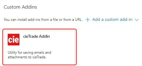 If Add from URL… is available, select this option and copy & paste this URL: https://app.cietrade.com/ NewOutlookAddin/manifest.xml