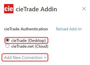 1. In the cieTrade Authentication page, select cieTrade (Desktop) and click Add New Connection +