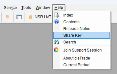 3. To obtain your Server Token, open cieTrade and go to Help | Share Key. Copy & paste the token from the Share Project Key page in cieTrade to the Share Token field in the add-in. Please note: This key is not user-specific.