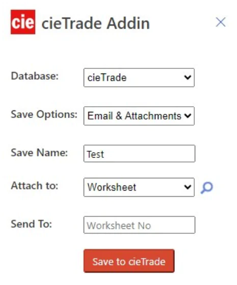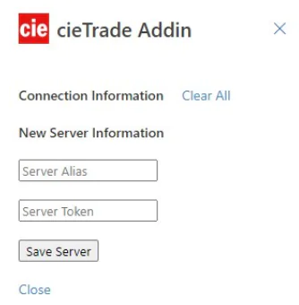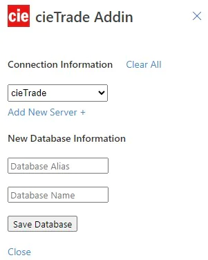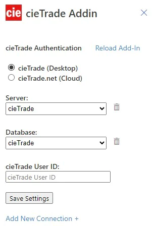 8. Click Save Settings. The add-in will remember your connection details and you won’t see this screen again unless you log out. Once complete, your cieTrade addin is ready to use!